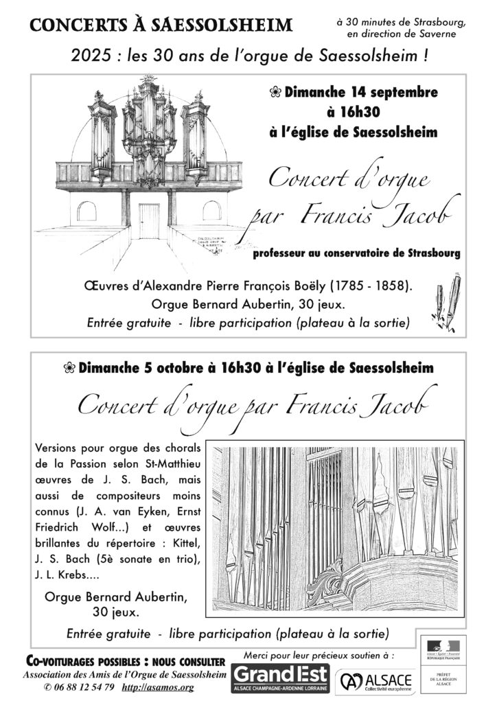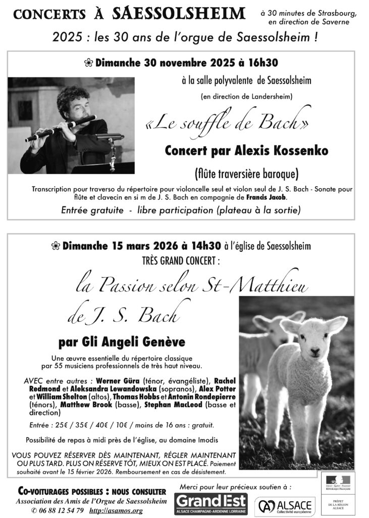 2025 – Les concerts Association des Amis de l’Orgue de Saessolsheim Tél : 06 88 12 54 79 http://asamos.org Publicité : • Affiche concerts début 2025 • 4 tracts sur un A4 : RECTO ; 4 tracts sur un A4 : VERSO